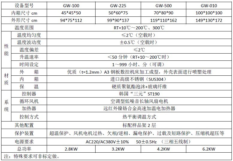 高温恒温试验箱箱体内胆均采用不锈钢镜面板(或拉丝板)氩弧焊制作而成,箱体外胆采用优质钢板喷塑处理,造型美观新颖。热风循环系统由能在高温下连续运转的风机和特殊风道组成,工作室内温度均匀。独立限温报警系统,超过限制温度即自动中断,保证实验安全运行不发生意外。设有大面积钢化玻璃观察窗,供观察工作室状况之用。